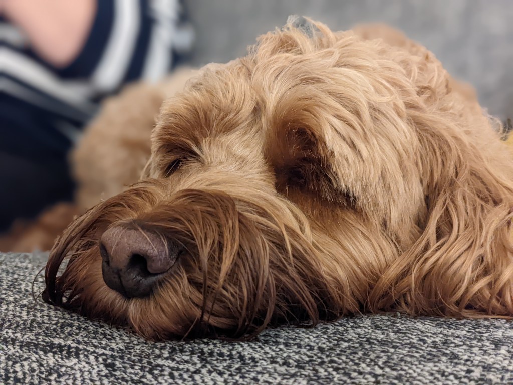 Debbie has taken Jimmy on a variety of walking routes around Derbyshire where Jimmy can explore and socialise and generally get tired out! After his walks, he’s super chilled and content.